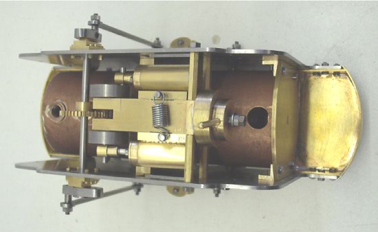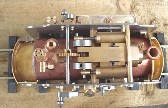 The picture above shows a top view with the motor fitted and the original boiler. Still very crude at this stage. The gas tank and valve were straightforward.
