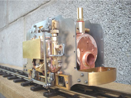 The reason for this was I decided to make the top covers as per the real thing and the top spring on the cylinder stuck up to far. The lubricator and boiler fittings were then made and it was run on air. It ran in a very “lumpy” fashion – the problem was traced to a being port not quite drilled through. The next big even was the steam up. This was carried out on my small stretch of test track in the garden. It lit first time but it soon became apparent that all was not well when the solder on the smokebox door hinges melted. After cutting a slot in the bottom of the smokebox to allow a bit more air flow I tried again – this time the flame came out of the slot and melted the sleepers! A redesigned burner much smaller with some air holes in the plug at the rear had the desired effect. I continued to run it several times over the next month ironing out all the small problems There are a couple of videos on youtube taken by myself and Dave Watkins.