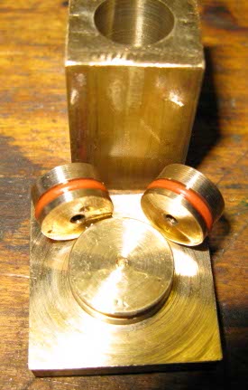 Here is the cylinder block with pistons and cylinder backplate Steam ports have not yet been drilled, nor has the side of the cylinder been “rounded”