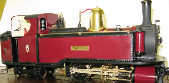 The picture above shows ‘Taliesin’ running on Lawnswood Light Railway pulling a 1880s Ffestiniog set, which includes a circa 1992 Brandbright Ashbury coach, restored and painted by Chris Cooper.