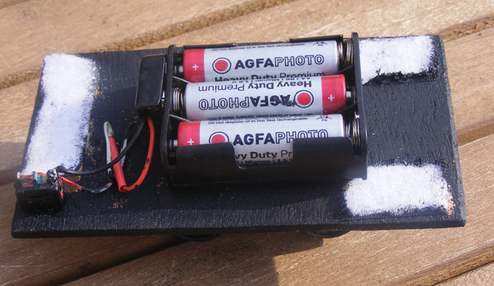…………… with the battery box Velcroed to the top (so it can be swapped if needs be) and a simple on/off switch. The other strips of Velcro……………..