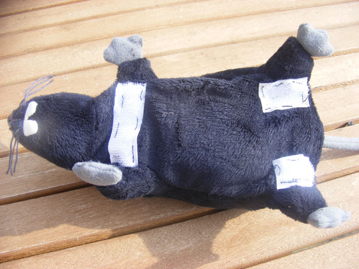 …………… are to hold the rat down to the platform. Oddly enough, this was the hardest part! The self-adhesive Velcro wouldn’t stick to the velour and the adhesive gunged up the needle when I tried to sew the Velcro on. The solution? Clean the adhesive off with thinners!