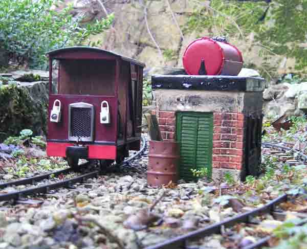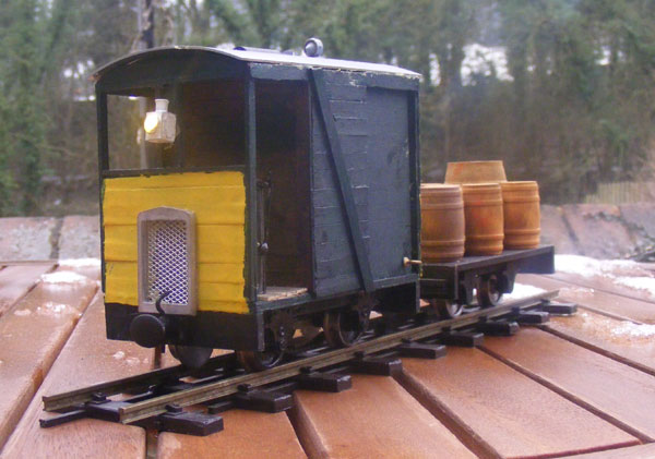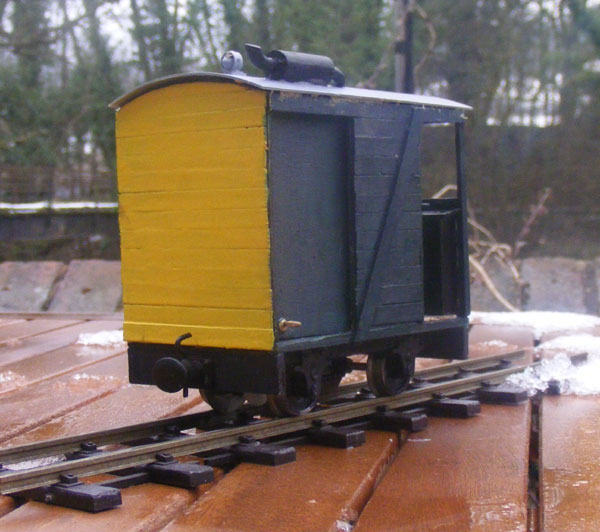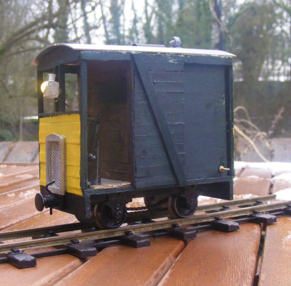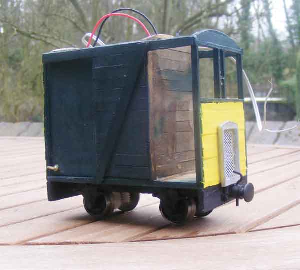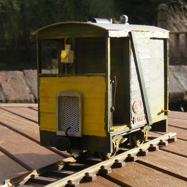 This picture shows her on her trial run on Sunday 18th April 2004. Note that the two front lights are drilled-out Brandbright lamps, not the ones supplied with the kit, which I considered to be too “toy-like” for a Serious Railway like the MDLR!