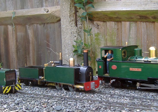 Over the past couple of years little bits of tinkering have taken place. I had to replace the cylinders after one group winter meet. The dear little engine thought she was a bird and took to flying. The first couple of laps she plodded around: I topped up the meths and water let her go. She took off at a rate of knots, went round the far corner on 2 wheels at 30 degs then lifted off she was airborne with a trail of flame behind her looking more like a comet crashing onto some chairs in front of the stage (our very own Andrew Coward had just got up from them). We have now put a crash barrier around this part of the track. Damage? Bent frame and piston rod. It’s due a new boiler some time soon which should help stop the erratic running.