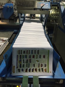 Dispatch of the large February mailing is now imminent. The pictures below show SMT going through the binding process, where the 76 pages are put in order and stapled prior to stacking. SMT was printed on Wednesday and bound on Thursday, meaning that the last of the material for the February mailing is now complete. We expect packaging to occur on Friday.