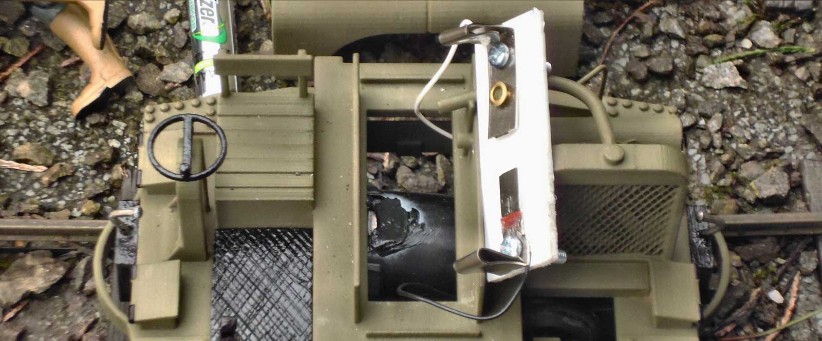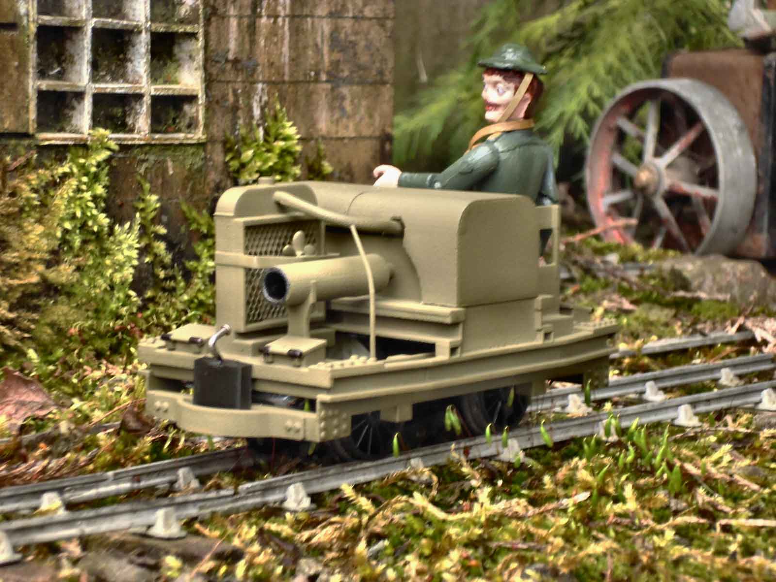 Firstly, a lot of credit goes to Simon Dawson of Rue d’Étropal who designs his own scale representations of WWI railway items and sells through the Shapeways website. This particular model is extraordinarily strong and remarkably light, with only very minor structural flexibility at the brake wheel and radiator pipe supports. All very charming and well detailed, but it’s immediately apparent this little workhorse is not ready to run! So, what do I need to do it, and what do I want to do to it?