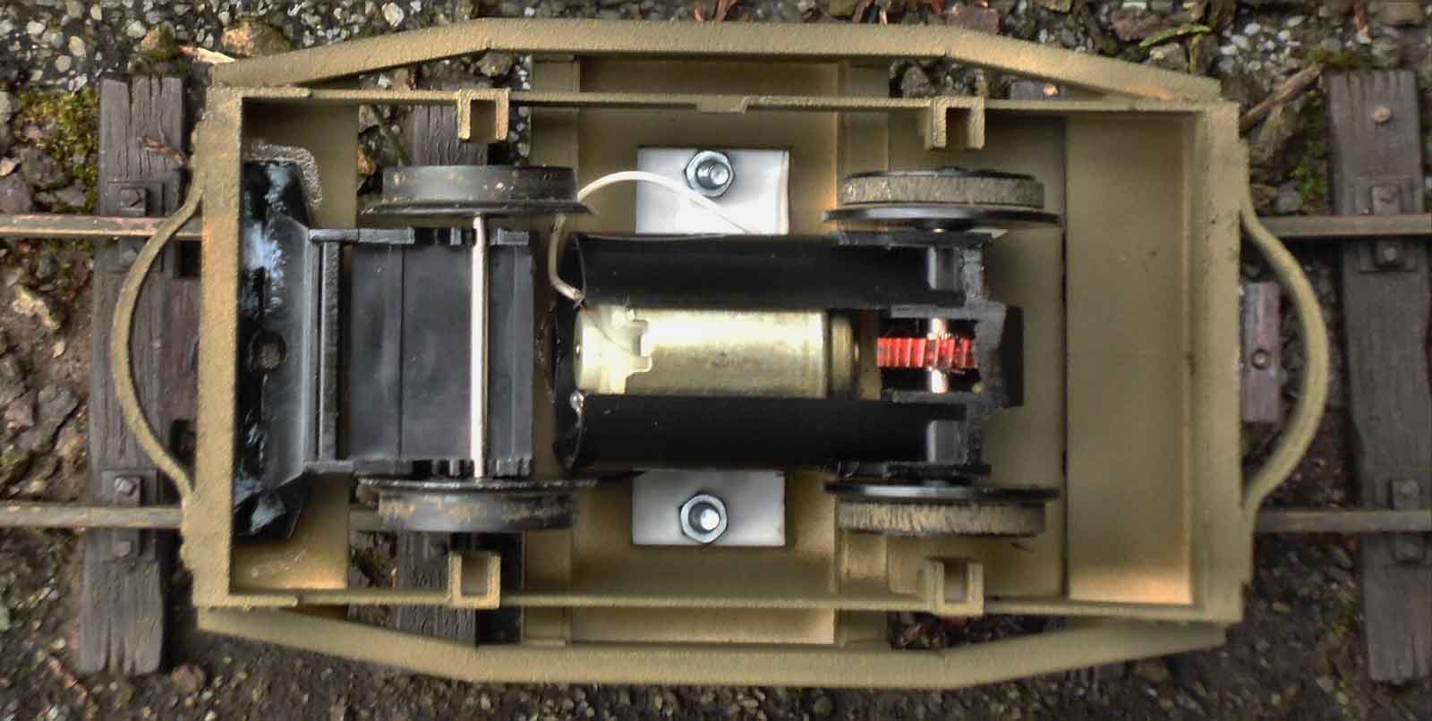This is the difficult bit. Having used Faller Mini Play-Train (set no.3515) chassis on several occasions, they are perfect for slow-running small locos. No cutting or modifying will be done to the underside of the Simplex.