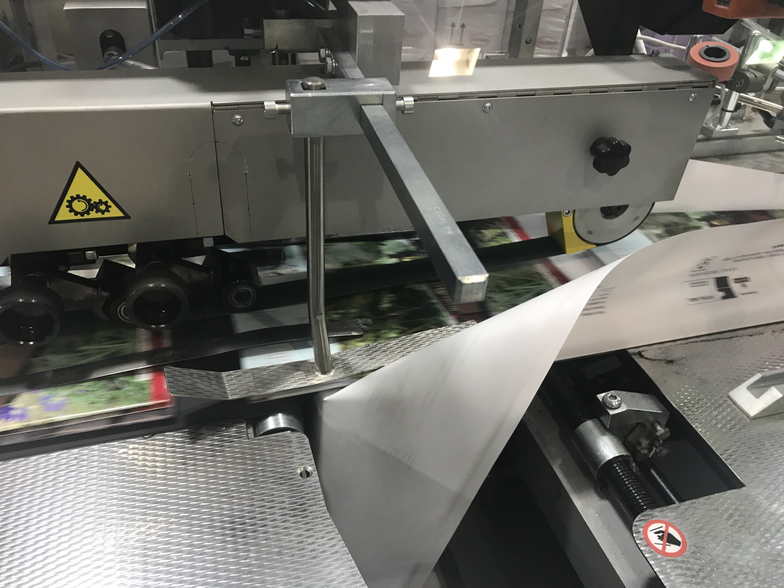 This is our first mailing using a paper enclosure, which is more widely recyclable than the poly wrap used in the past. The picture to the left shows our mailing being wrapped this morning and this link shows the process in action.