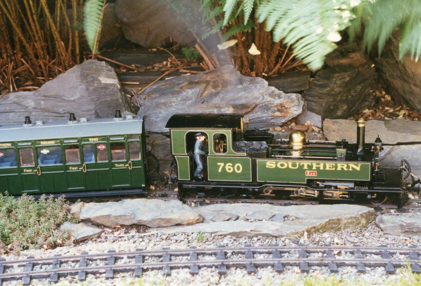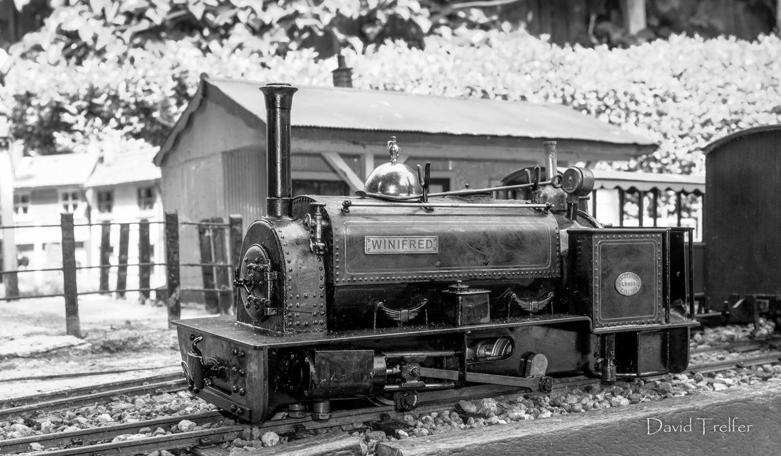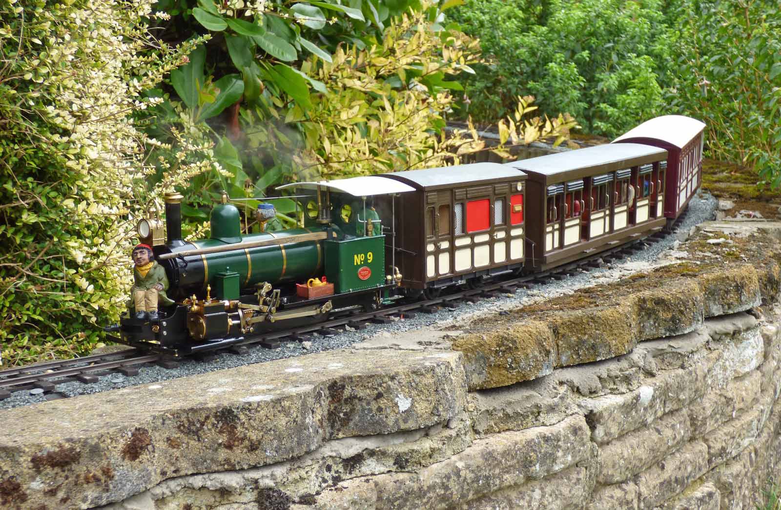 A summer’s day on the Westfield Light Railway: someone left the gate open to the Cricket pitch and let the sheep in! The loco is by Steve Acton, modelled on "Quintus" from the Furzebrook Railway. Photo: Andrew J Mitchell.