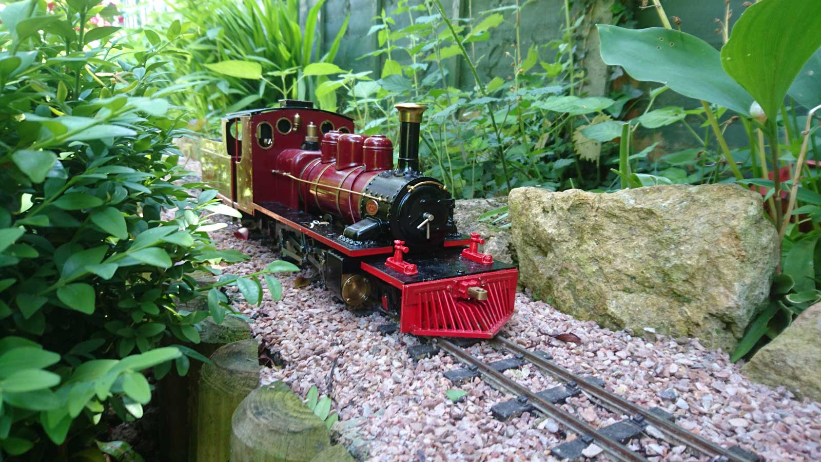 B class "Himalayan Mountaineer' with a train of Yatton Engineering vehicles, on the South Charnwood Railway in Leicestershire. Photo: Martin Smith.