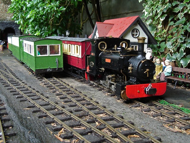 Time to clear the track! A fast train approaches on the Isle of Westland Railway. Photo by Andrew Coward.